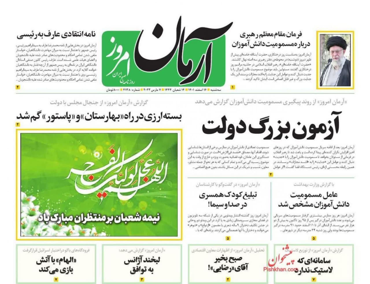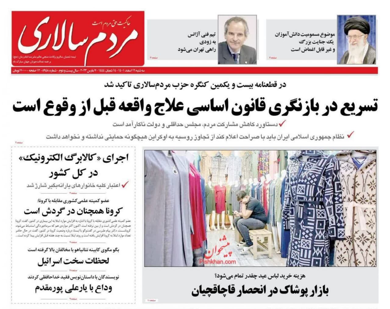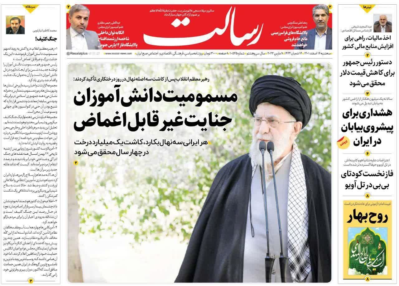 صفحه نخست روزنامه‌های سیاسی سه شنبه ۱۶ اسفند ۱۴۰۱