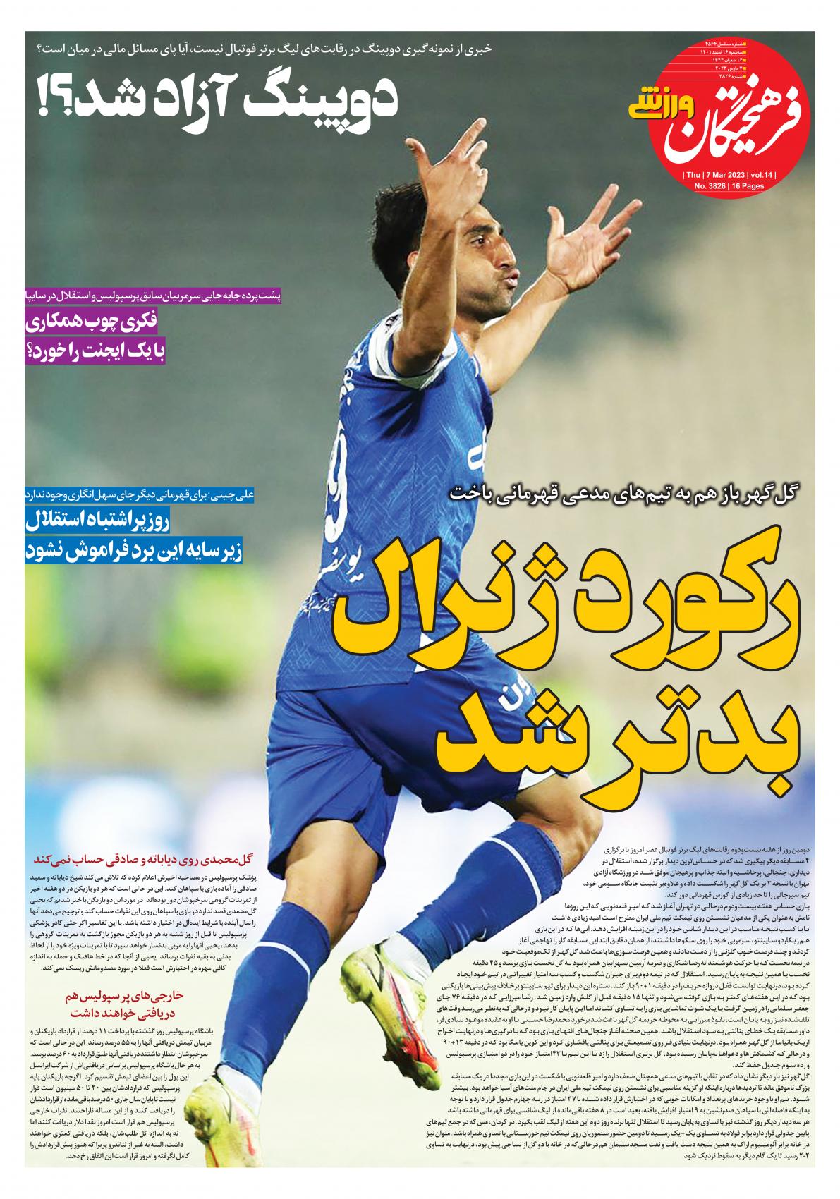 صفحه نخست روزنامههای ورزشی امروز (سه شنبه ۱۶ اسفند) را در ادامه مشاهده میکنید.
