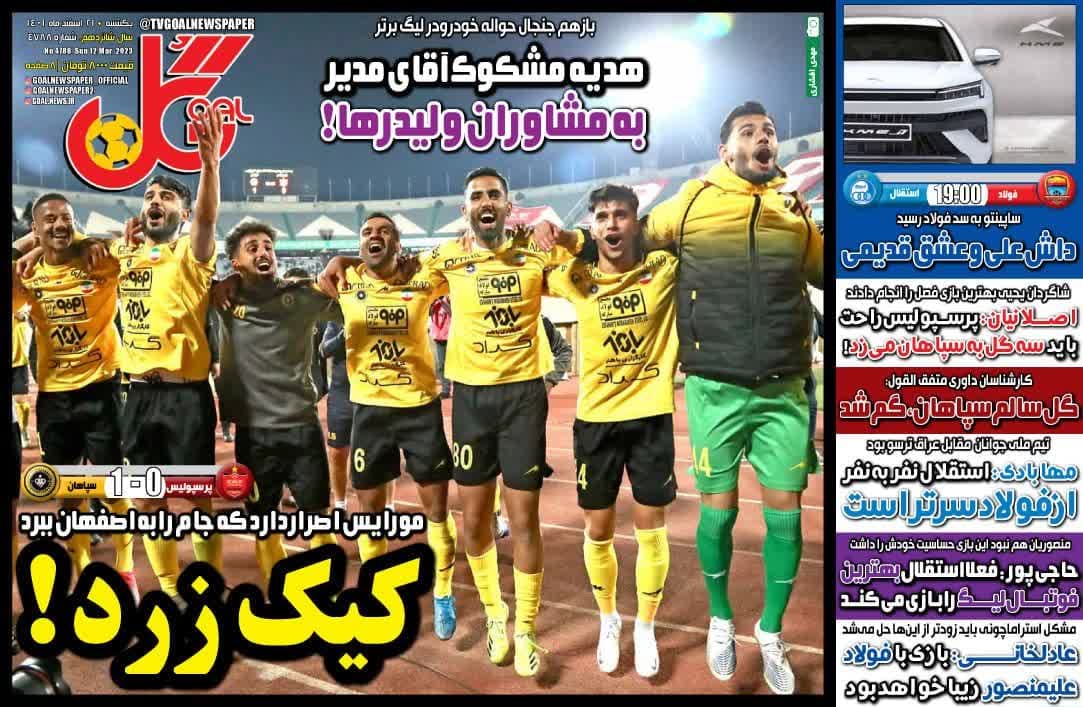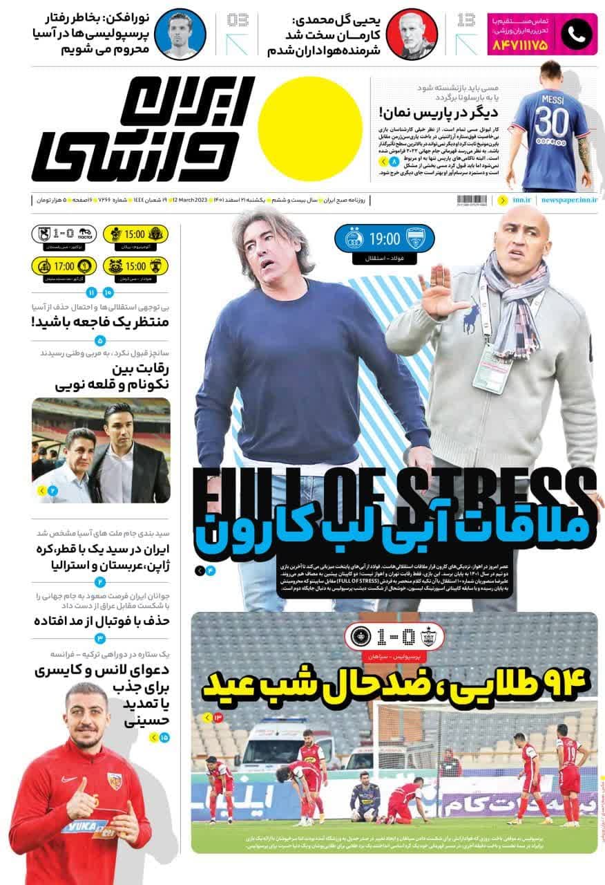 صفحه نخست روزنامه‌های ورزشی امروز (يکشنبه ۲۱ اسفند ۱۴۰۱) را در ادامه مشاهده می‌کنید
