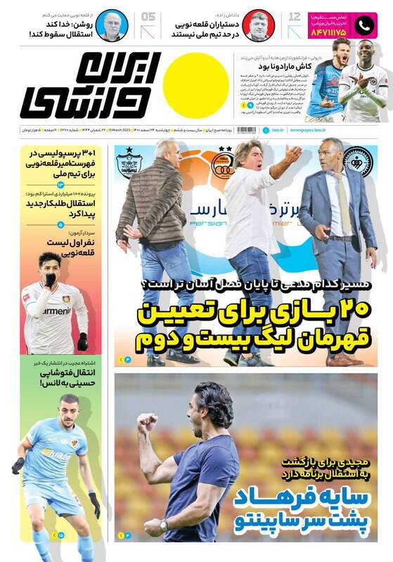 صفحه نخست روزنامه‌های ورزشی؛ چهارشنبه ۲۴ اسفند