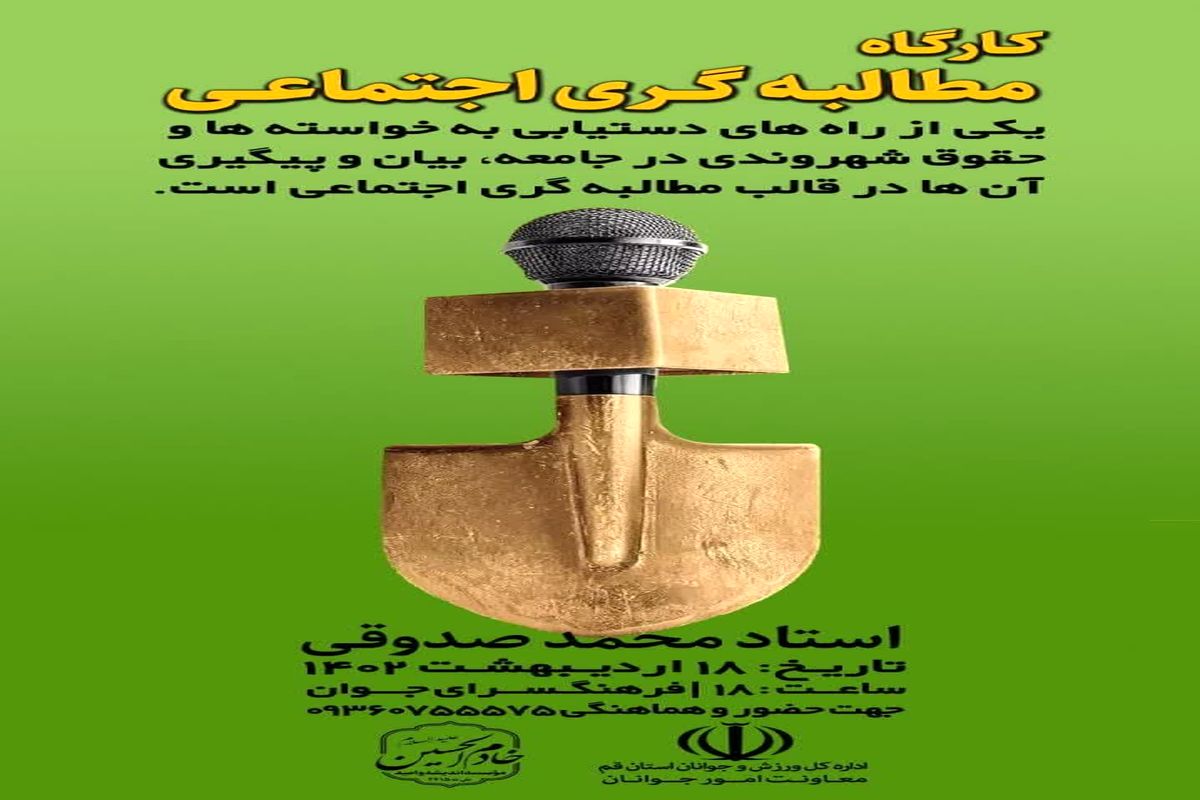 با عنایت به آنکه یکی از راه های دستیابی به خواسته ها و حقوق شهروندی در جامعه، بیان و پیگیری آنها در قالب مطالبه گری اجتماعی است، از این رو این کارگاه برای جوانان قمی برگزار می شود.