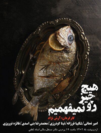 نمایش هیچ چیز رو نمیفهمیم به نویسندگی و کارگردانی آرش نژاد هر روز ساعت ۱۹ در پردیس تئاتر مستقل، تماشاخانه استاد لطفی روی صحنه میرود و از بازیگران آن میتوان به امیر نجاتی، شکیبا فرزانه، نینا گودرزی، محمدرضا بنیاسدی و فائزه نوروزی اشاره کرد.