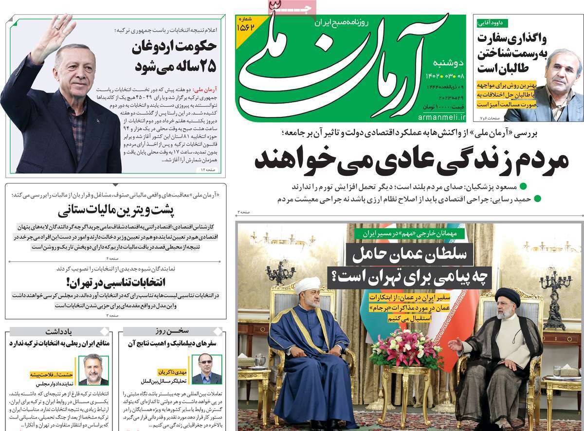 صفحه نخست روزنامه‌های سیاسی دوشنبه ۸ خرداد