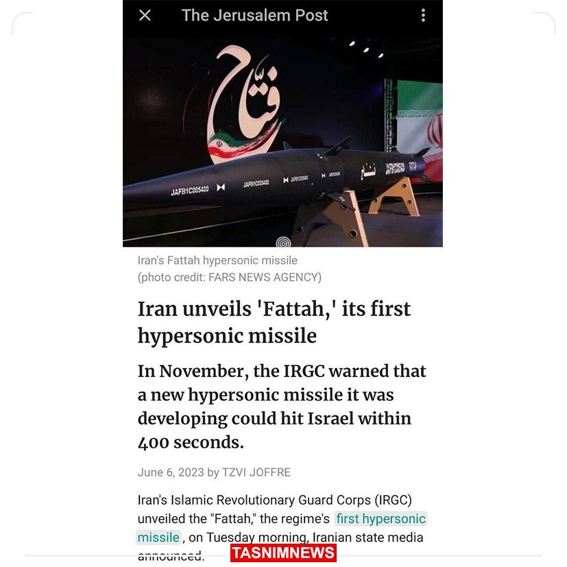 جروزالم پست پس از رونمایی از فتاح نوشت: موشک هایپرسونیک فتاح در ۴۰۰ ثانیه به اسرائیل میرسد.