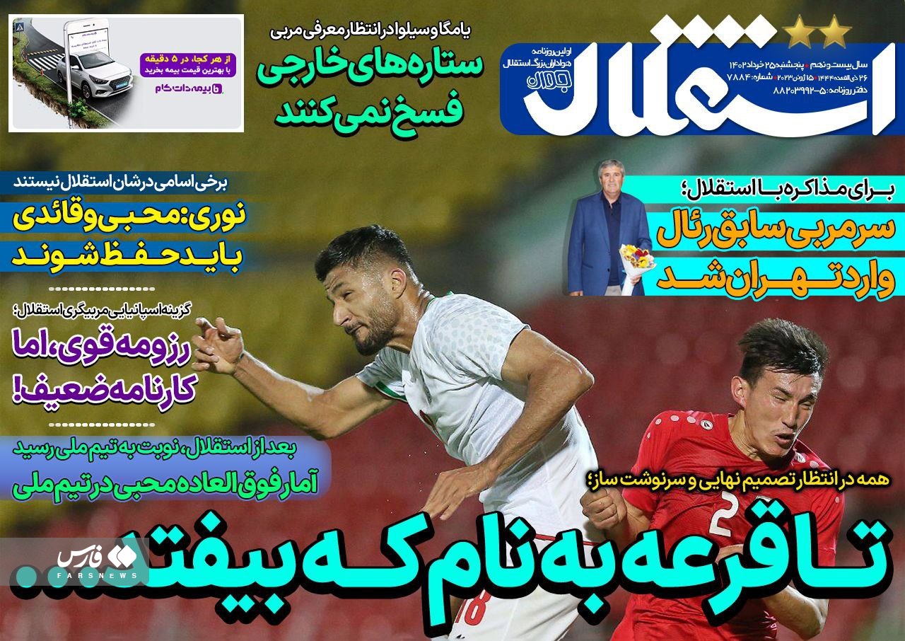 عناوین روزنامه‌های ورزشی؛ پنجشنبه ۲۵ خرداد ۱۴۰۲