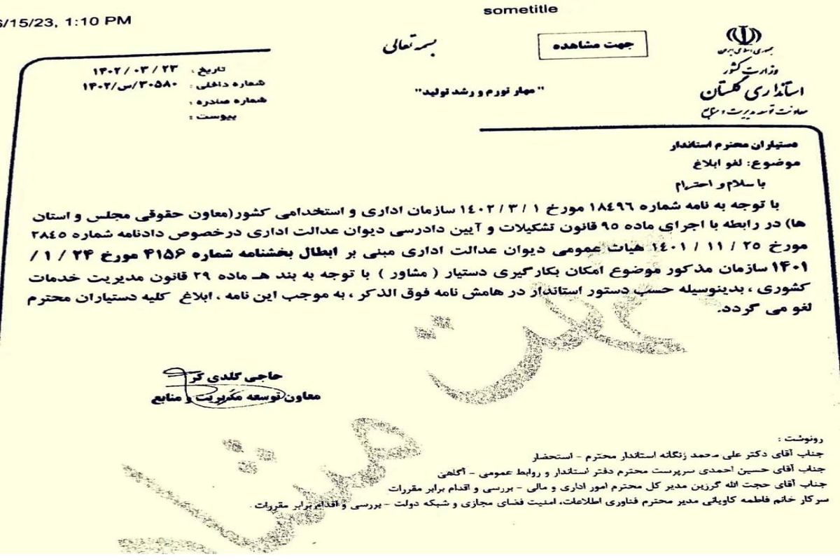 با توجه به رای هیات عمومی دیوان عدالت اداری حکم همه دستیاران استاندار گلستان لغو شد.