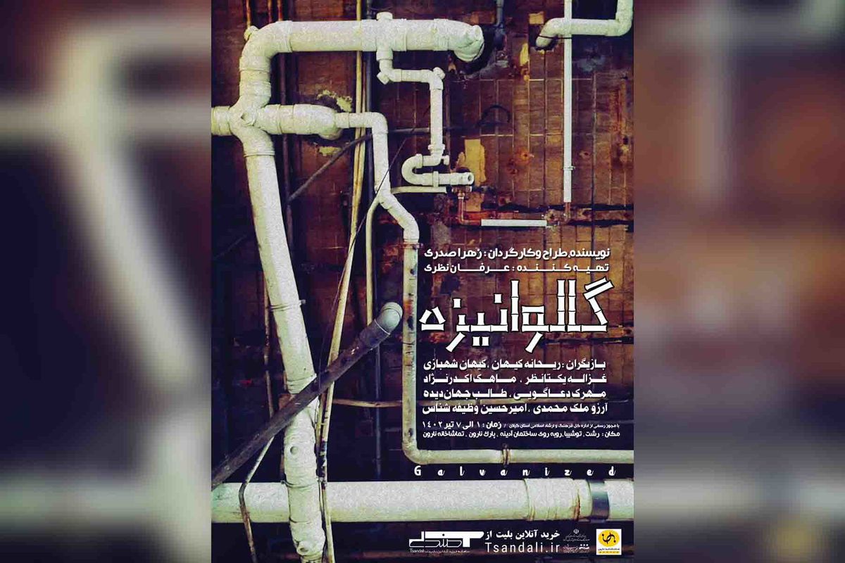به گزارش گروه فرهنگ و هنر برنا؛ نمایش «گالوانیزه» به نویسندگی، طراحی و کارگردانی زهرا صدری ۱ الی ۷ تیرماه ۱۴۰۲ ساعت ۱۸ در تماشاخانه نارون رشت به روی صحنه می رود.
