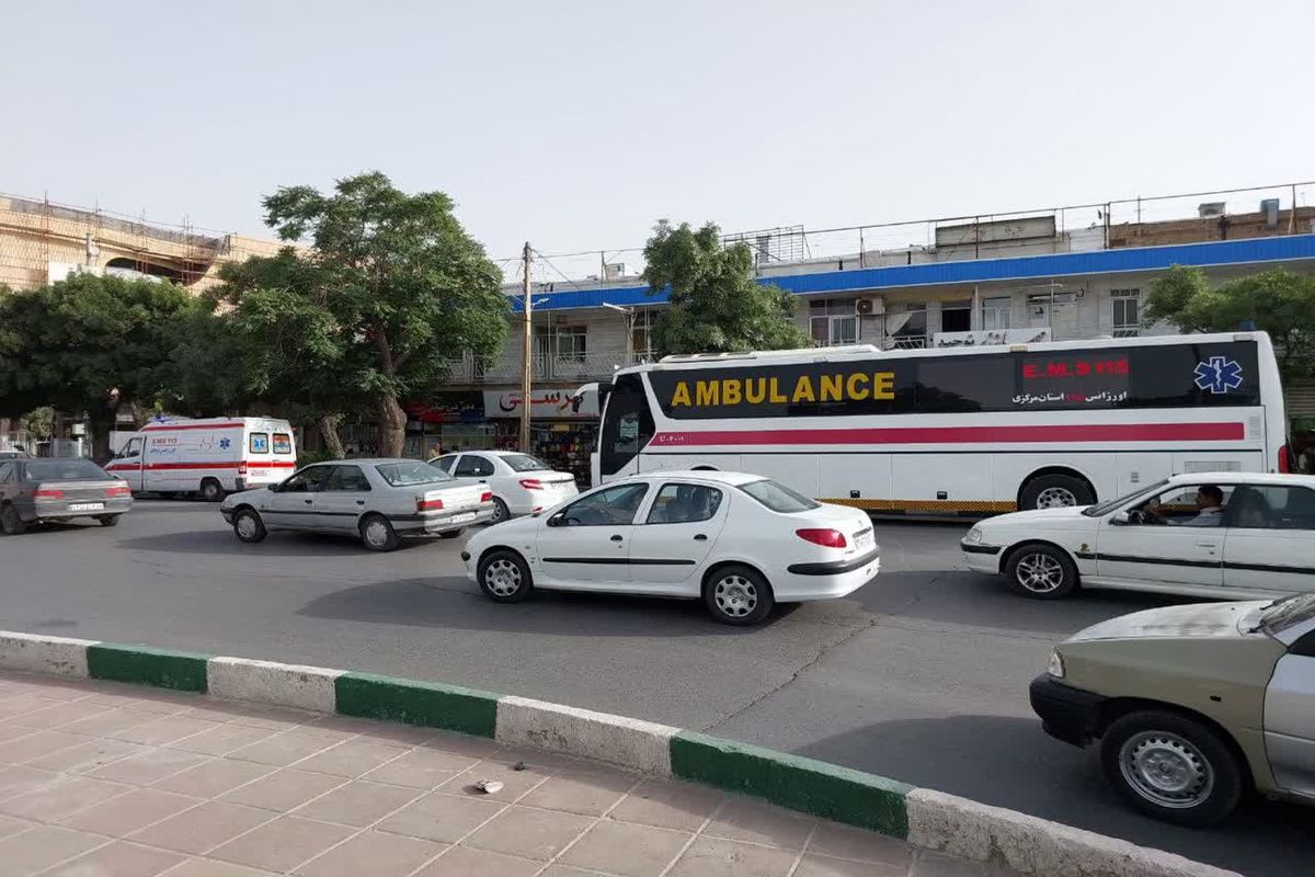 در پی افزایش غلظت آلودگی هوا در کلانشهر اراک آمبولانس اورژانس ۱۱۵ بانوان و اتوبوس آمبولانس برای رسیدگی به بیماران تنفسی در میدان شهدای اراک مستقر شدند.