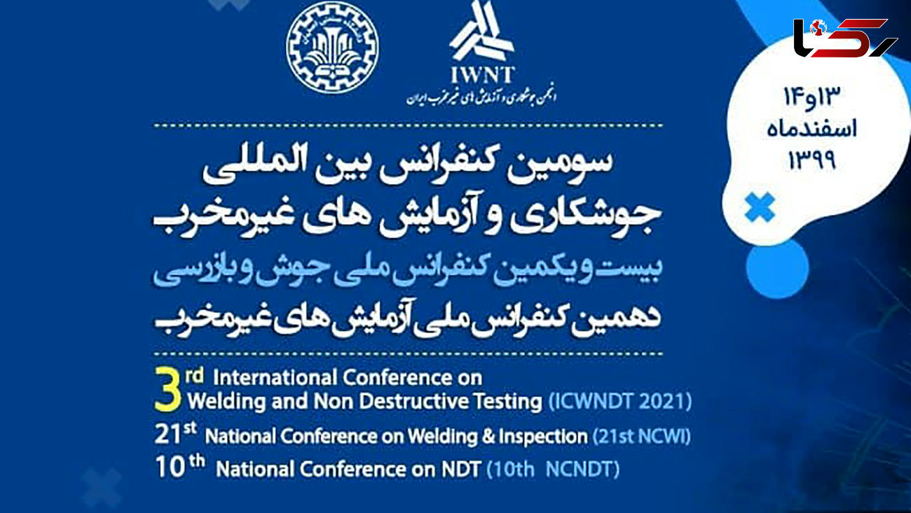 سومین کنفرانس بین المللی جوشکاری و آزمایش های غیرمخرب ایران به همراه بیست و یکمین کنفرانس ملی جوش و بازرسی و دهمین کنفرانس ملی آزمایش های غیرمخرب با همکاری انجمن جوشکاری ایران و دانشکده مهندسی مواد دانشگاه صنعتی اصفهان بصورت برخط در تاریخ های 13 و 14 اسفندماه 99 برگزار می شود.
