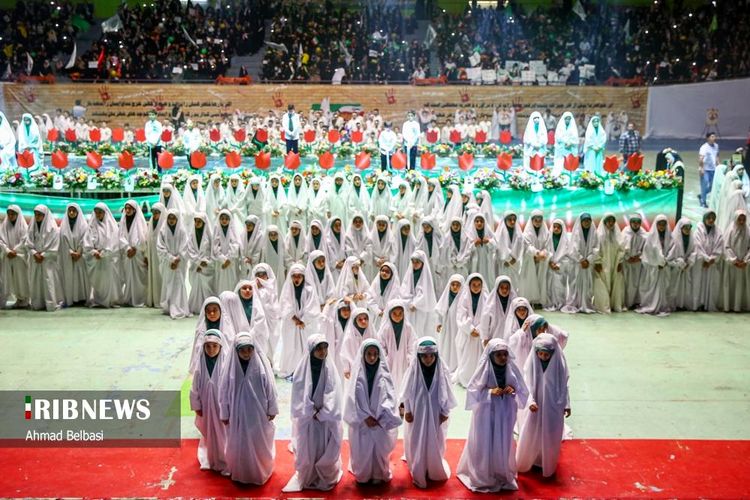 اجتماع بزرگ دختران انقلاب، حماسه ایستادگی مردم و خانوادههای شهدا در روز عفاف و حجاب با حضور بانوان در ورزشگاه ۱۲ هزار نفری آزادی برگزار شد. در این مراسم به مناسبت تولد شهید آرمان علیوردی، مادر شهید به حجاب اولیها چادر هدیه دادند. همچنین سرود حجاب توسط حاج ابوذر روحی و حاج امیر عباسی به صورت زنده اجرا شد.