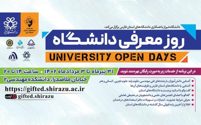 مدیر دفتر استعدادهای درخشان دانشگاه شیراز خاطرنشان کرد: در این رویداد، دانشگاههای هنر شیراز، صنعتی، فسا و جهرم هم حضور خواهند داشت و با برپایی غرفههای اختصاصی به معرفی دانشگاه خود و رشتههای آن خواهند پرداخت.