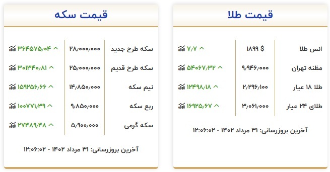 امروز در بازار آزاد قیمت طلای ۱۸ عیار هر گرم ۲ میلیون و ۲۹۶ هزار تومان و قیمت سکه تمامبهار آزادی طرح جدید ۲۸ میلیون تومان است.