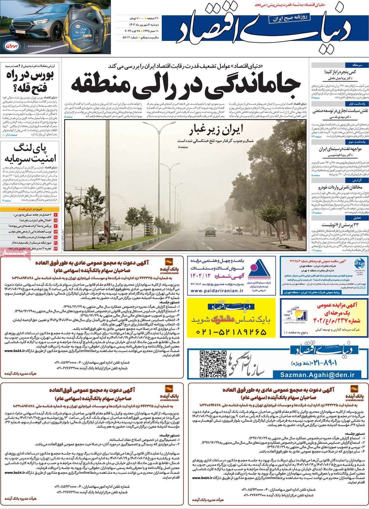 عناوین صفحه نخست روزنامه‌های سیاسی دوشنبه 6 شهریور