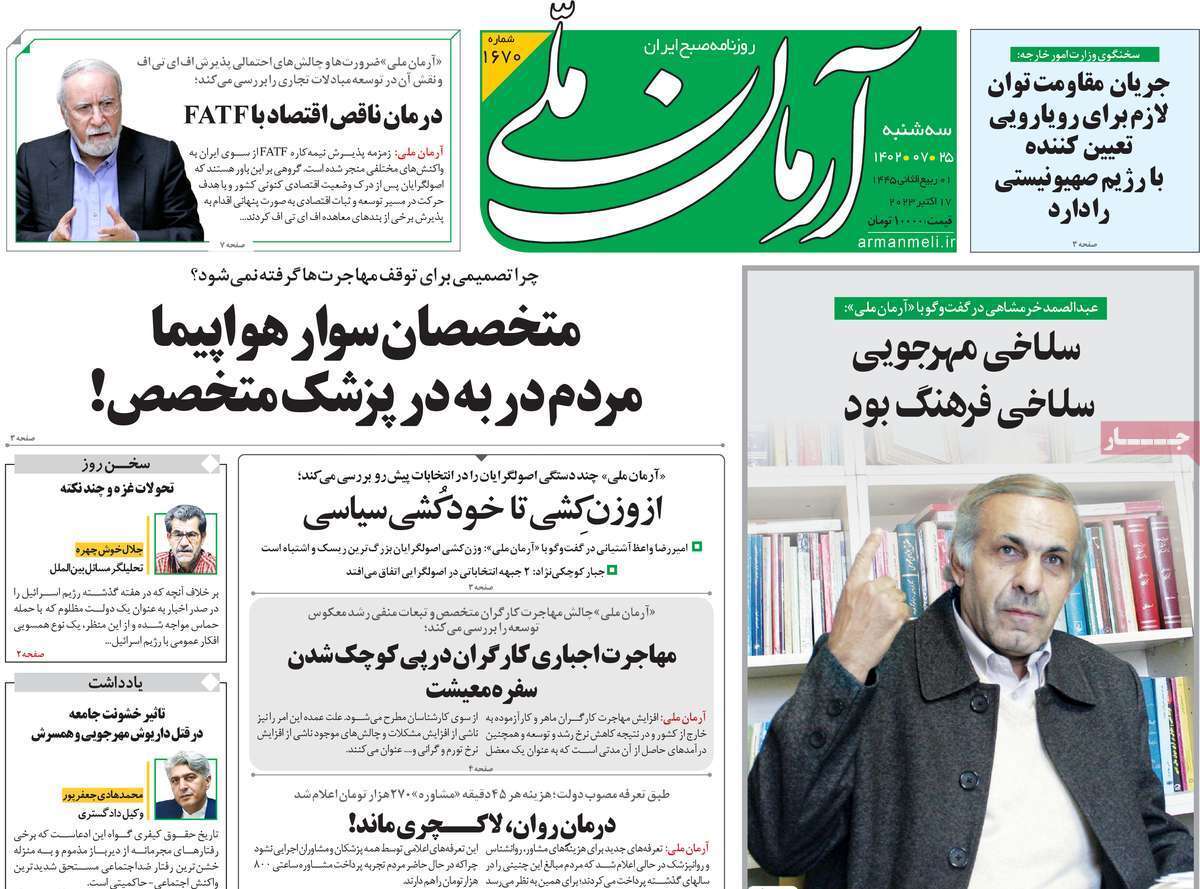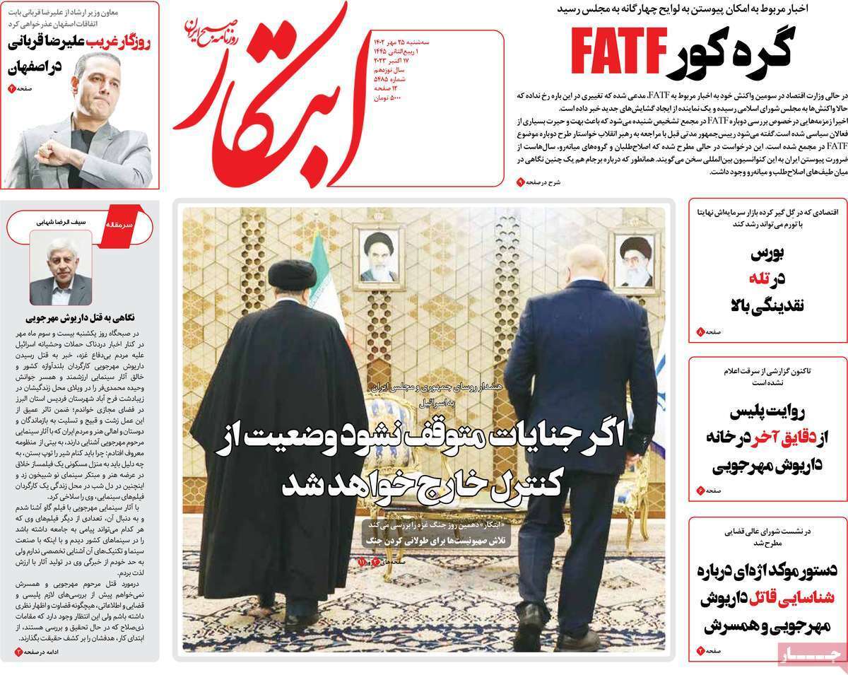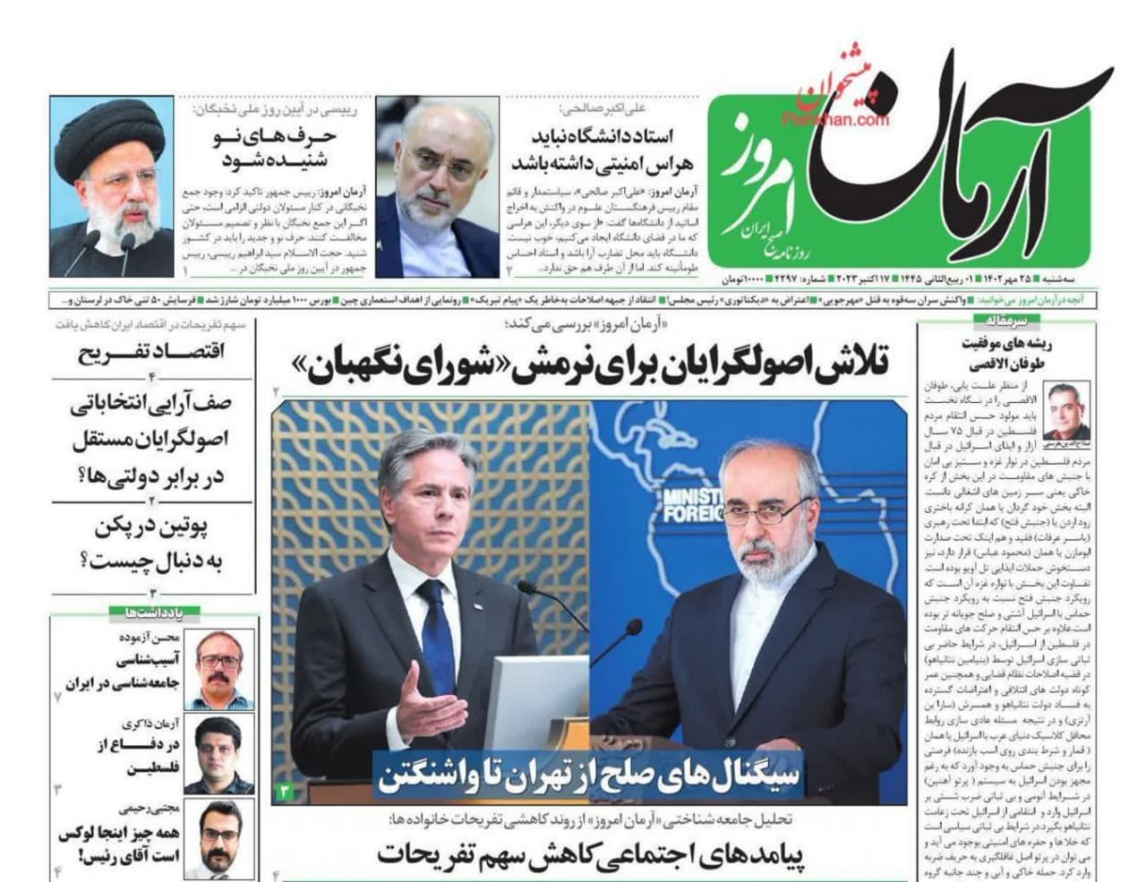 عناوین صفحه نخست روزنامه‌های سیاسی سه‌شنبه ۲۵ مهر