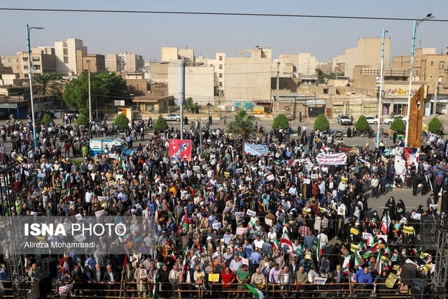 راهپیمایی اقشار مختلف مردم اهواز امروز (۲۷ آبان ماه) در پی تداوم حملات وحشیانه رژیم غاصب صهیونیستی به مردم غزه از بلوار آیت الله بهبهانی آغاز شد.