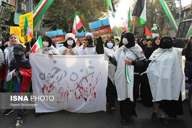 مردم تهران همزمان با مردم استان های مختلف کشور در تهران راهپیمایی حمایت از غزه برگزار کردند.