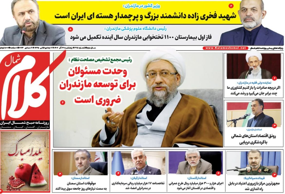 در این بخش صفحه اول روزنامه های مازندران پنج‌شنبه ۳۰ آذر ۱۴۰۲ تقدیم کاربران و علاقمندان عزیز می گردد: