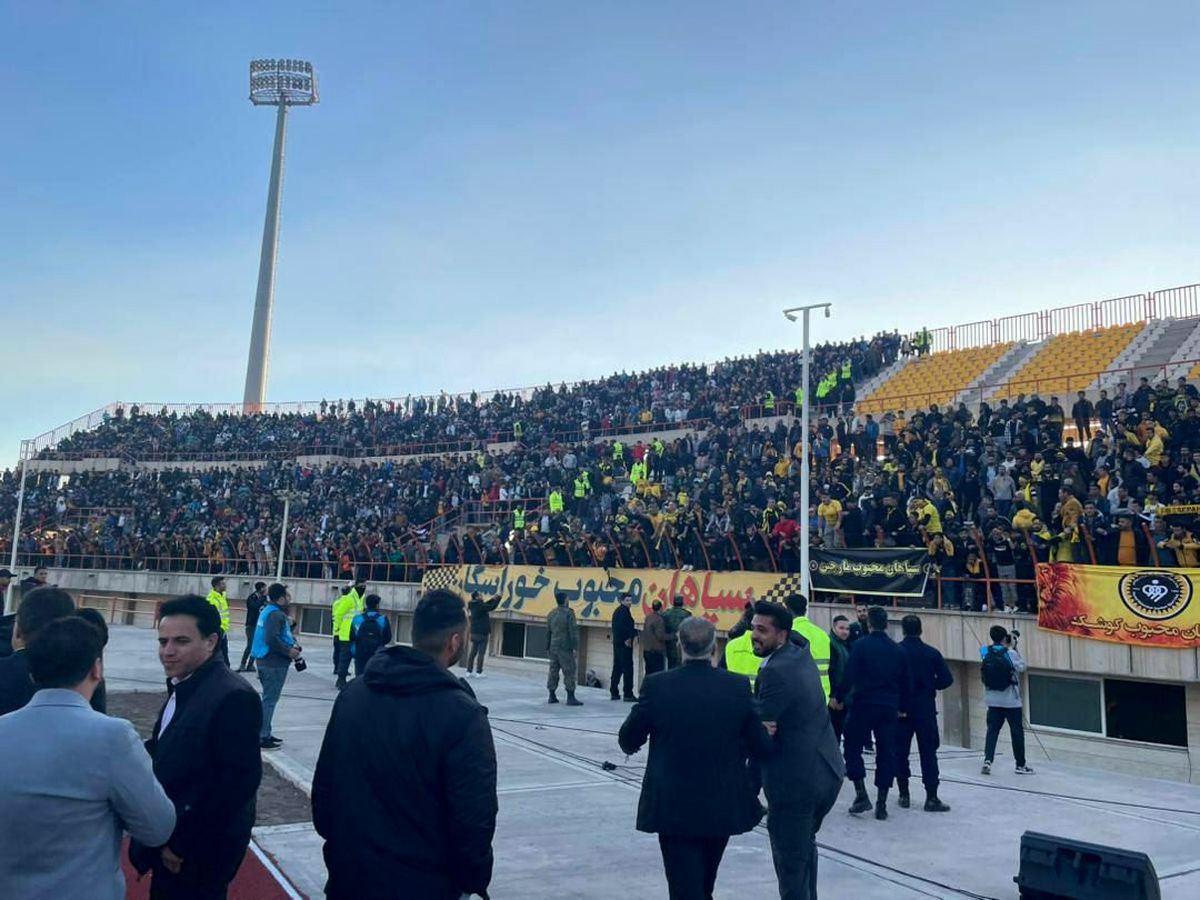 نیمه دوم بازی با بازگشت سپاهانی ها به زمین در حال برگزاری است. جالب اینکه کماکان فاصله بین هواداران رعایت نشده است!
