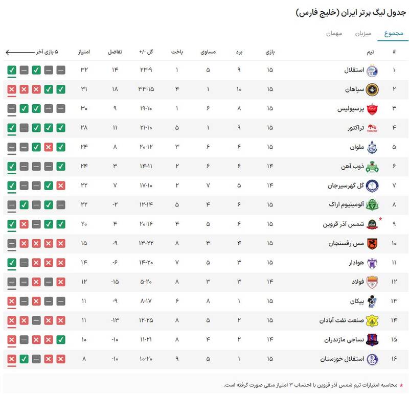 بازی های باقیمانده هفته پانزدهم لیگ برتر بیست و سوم با شکست یک بر صفر سپاهان مقابل شمس آذر قزوین و تساوی یک بر یک پرسپولیس و مس رفسنجان پایان یافت. استقلال با کسب ۳۲ امتیاز قهرمان نیم فصل شد.