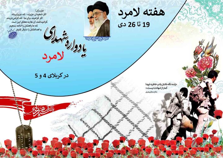 لامرد - غیورمردی، سلحشوری و نقش پررنگ شهرستان لامرد در عملیات کربلای ۴ و ۵ و تقدیم ۳۶ شهید سبب شده است که ۱۹ تا ۲۶ دی ماه به عنوان هفته لامرد نامگذاری و برنامههای مختلفی برگزار شود.
