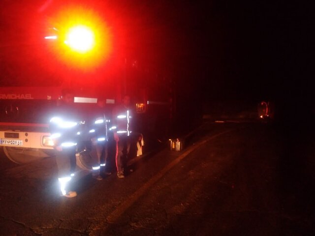 اعزام ۲تیم آتش نشانی سنندج به محل واژگونی تانکر در مسیر حسین آباد
