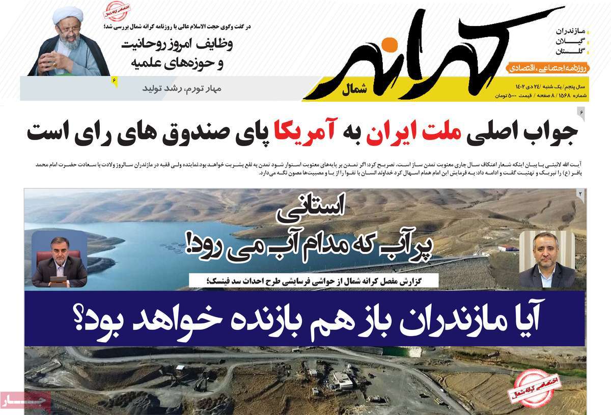 به گزارش شمال نیوز، در این بخش صفحه اول روزنامه های مازندران یکشنبه ۲۴ دی ۱۴۰۲ تقدیم کاربران و علاقمندان عزیز می گردد: