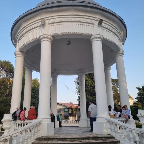 عباسیان که مشاور گردشگری شهرداری بندرانزلی هم است، می افزاید: « بنای ساختمان جایگاه موزیک بندرانزلی در بین مردم به «حافظیه بندرانزلی» هم معروف شده است. معمار حافظیه شیراز مهندسی فرانسوی بود. ولی هر دو بر اساس الگوی معماری بناهای یونانی ساخته شده است. با اینکه الگوی معماری آن شبیه حافظیه شیراز است ولی جایگاه موزیک بندرانزلی ۴ سال زودتر از بنای حافظیه ساخته شده و از زمان ساخت تاکنون محل اجرای موزیک برای شهروندان بندرانزلی بوده است.»