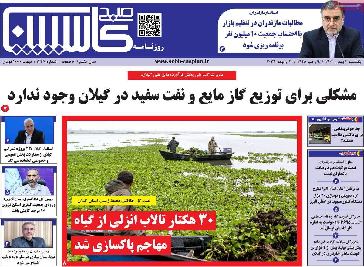 در این بخش صفحه اول روزنامه های مازندران یکشنبه ۱ بهمن ۱۴۰۲ تقدیم کاربران و علاقمندان عزیز می گردد: