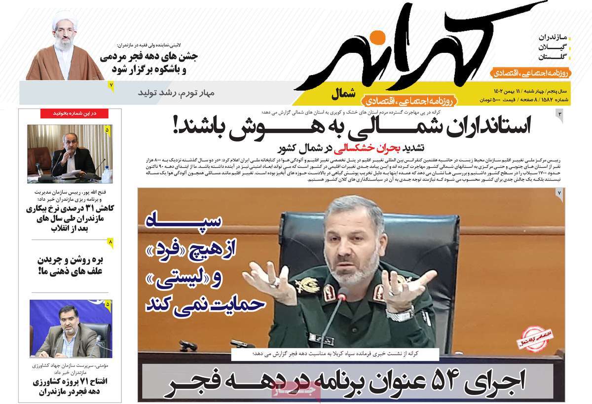در این بخش صفحه اول روزنامه های مازندران چهارشنبه ۱۱ بهمن ۱۴۰۲ تقدیم کاربران و علاقمندان عزیز می گردد: