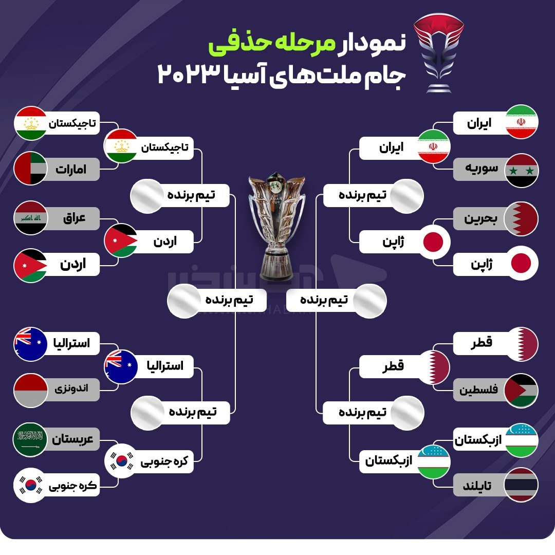 نمودار مرحله حذفی جام ملتهای آسیا در پایان بازی های دیشب