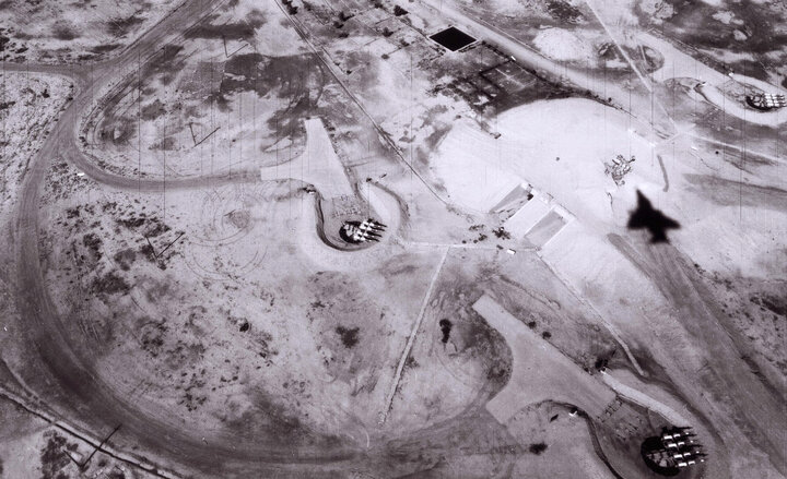 عکس هوایی از پالایشگاه کرکوک در ۱۱ آذرماه ۱۳۵۹ که توسط خلبانان بهرام ایکانی و عبدالکریم عصاره گرفته شده است