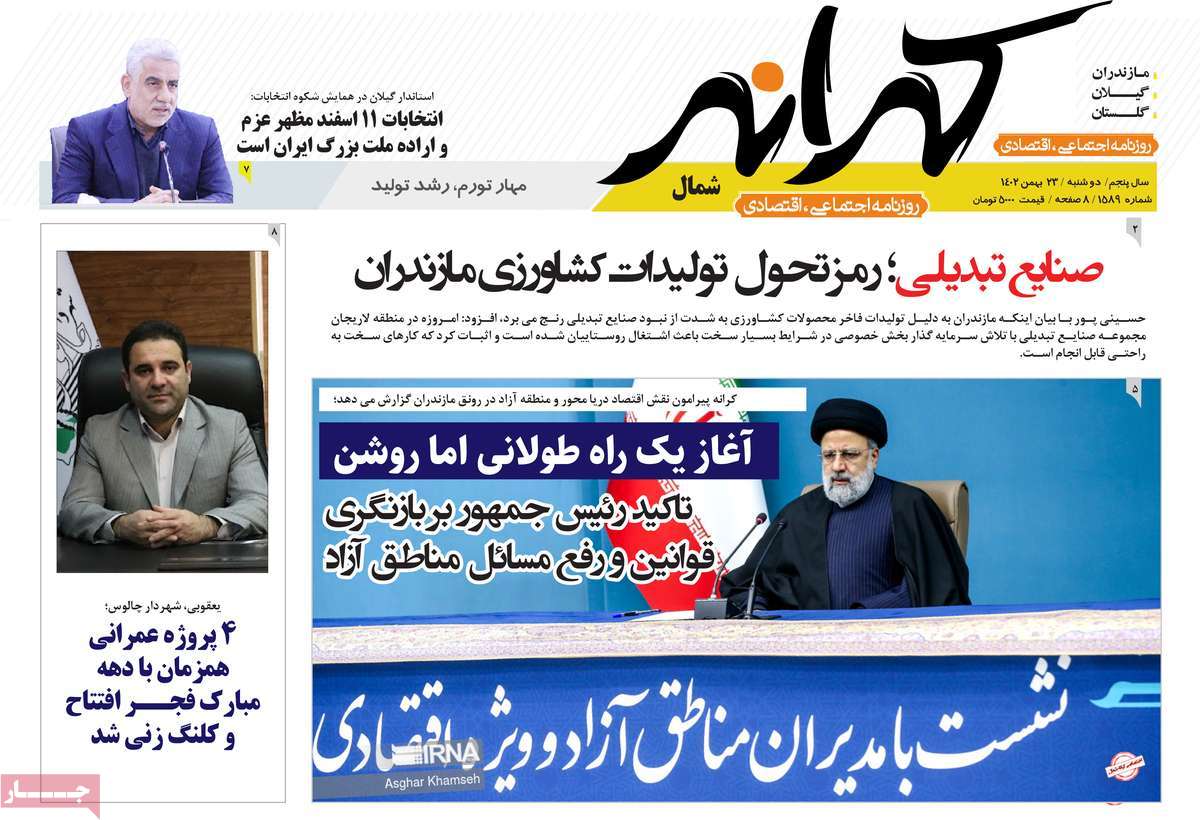 در این بخش صفحه اول روزنامه های مازندران دوشنبه ۲۳ بهمن ۱۴۰۲ تقدیم کاربران و علاقمندان عزیز می گردد: