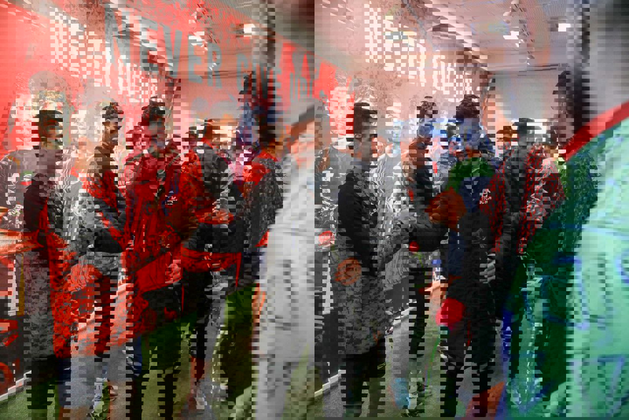 بازیکنان تیم بزرگسالان با تشکیل تونل افتخار و اهدای شاخه گل از بازیکنان تیم امید استقبال کردند. در ادامه، هوشنگ نصیرزاده مدیرعامل و پاکو خمز سرمربی تیم برای دقایقی در سالن کنفرانس باشگاه برای اعضای تیم بزرگسالان و امید تیم سخنرانی کردند.