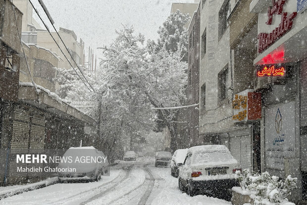 اصفهان - بارش برف و باران و مه گرفتگی منجر به آبگرفتگی معابر در شهر میمه شد.