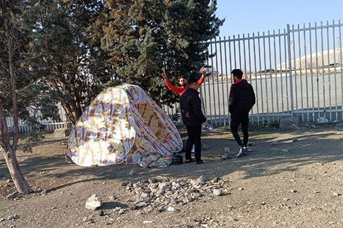 تعدادی از این تماشاگران در چادرهای مسافرتی اسکان دارند تا از سرما در امان بمانند.