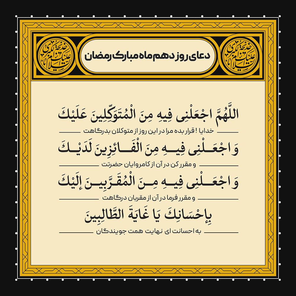 «خدایا، مرا در این ماه از توکلکنندگان و از رستگاران نزد خود و از مقرّبان درگاهت قرار بده، به احسانت ای هدف جویندگان»