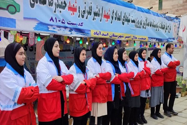 جوانان اسدآبادی و همدانی در این پایگاه یک به یک پیش آمدند و میزبان میهمانان کوچک به عنوان غنچههای هلال نیز میشدند.