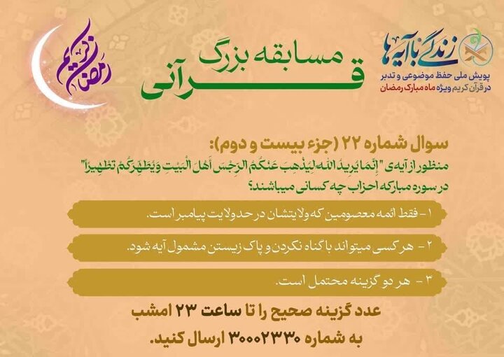 سوال طرح زندگی با آیهها در روز بیست و دوم ماه رمضان در استان فارس این است: