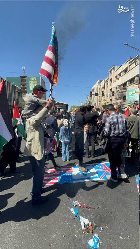 در مراسم راهپیمایی روز قدس در تهران پرچم آمریکا توسط تعدادی از حاضران به آتش کشیده شد.