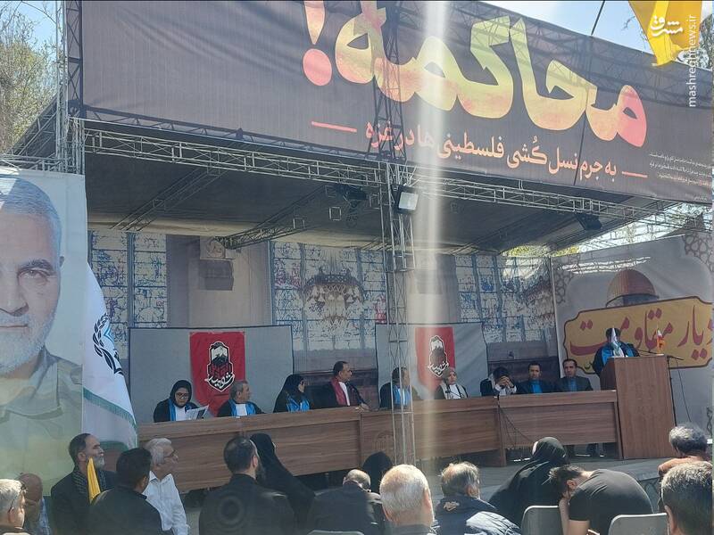 جلسه محاکمه سران رژیم صهیونسیتی با حضور تعدادی از قضات و وکلا و مشارکت مردم در حاشیه راهپیمایی روز قدس در تهران به صورت نمادین برگزار شد.