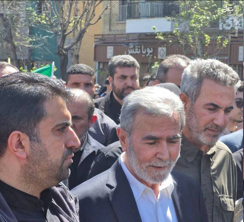زیاد نخاله دبیر کل جنبش جهاد اسلامی فلسطین همزمان با برگزاری راهپیمایی روز قدس در تهران و همچنین تشییع پیکر شهدای راه قدس در این مراسم حضور یافت.