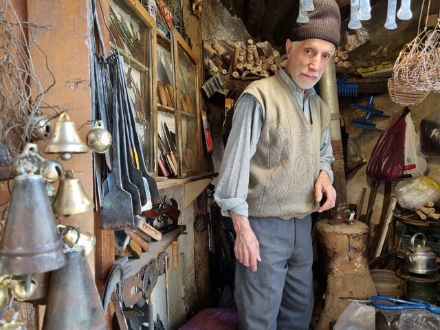 از گرمای تفتیده به سایه سار «کفا بازار» ماسوله میروم. هنوز دربهای چوبی و تاشوی همه حجرهها گشوده نشده است. در میانه بازار، صدای چکشی که بر سندان میخورد، مرا به سمت چلنگری (آهنگری) ماسوله میکشاند. «جبار حاتم» افزون بر ۷۰ سال سن دارد و چلنگری را شغل آبا و اجدادیاش معرفی میکند. خانه و کارگاه اصلیاش در محله «کش سر علیا» ماسوله است و به گفته خودش در این حجره تنها کارهای جزئی را انجام میدهد. سقف چوبی حجرهاش با کوره کوچکی که با ذغال گرم میشود، سیاه و دودزده است.