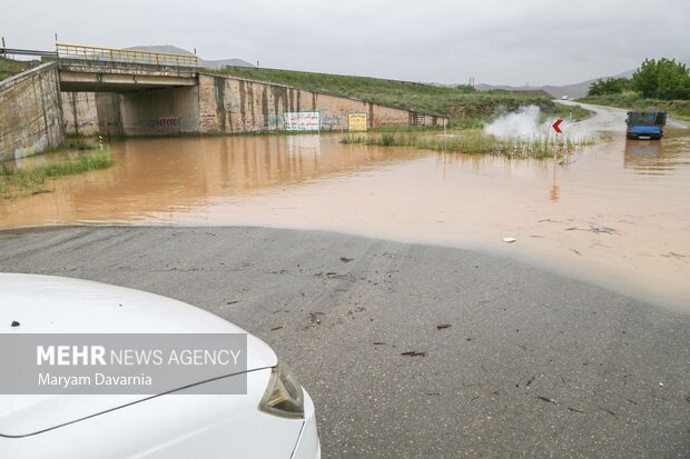 بجنورد_ بارش باران و تگرگ باعث جاری شدن سیل در شهر درق شد.