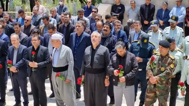 به گزارش خبرنگار مهر، همزمان با آئین گرامیداشت سالروز آزادسازی خرمشهر، روز مقاومت و پایداری و روز دزفول، جمعی از مردم و مسؤولان شهرستان سقز با حضور در گلزار شهدا، تمثال رئیس جمهور شهید، آیتالله رئیسی را گلباران کردند.