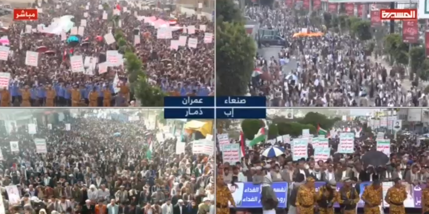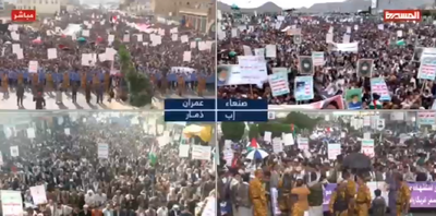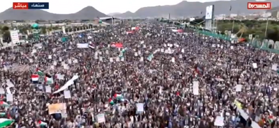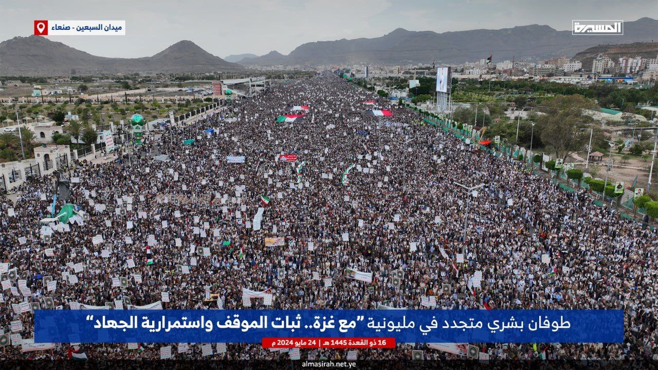 شرکت کنندگان در راهپیمایی میلیونی مردم در صنعاء و دیگر شهرهای یمن که در حمایت از غزه و باشعار «همراه با غزه... ثبات درموضع و ادامه جهاد» برگزار شد،
