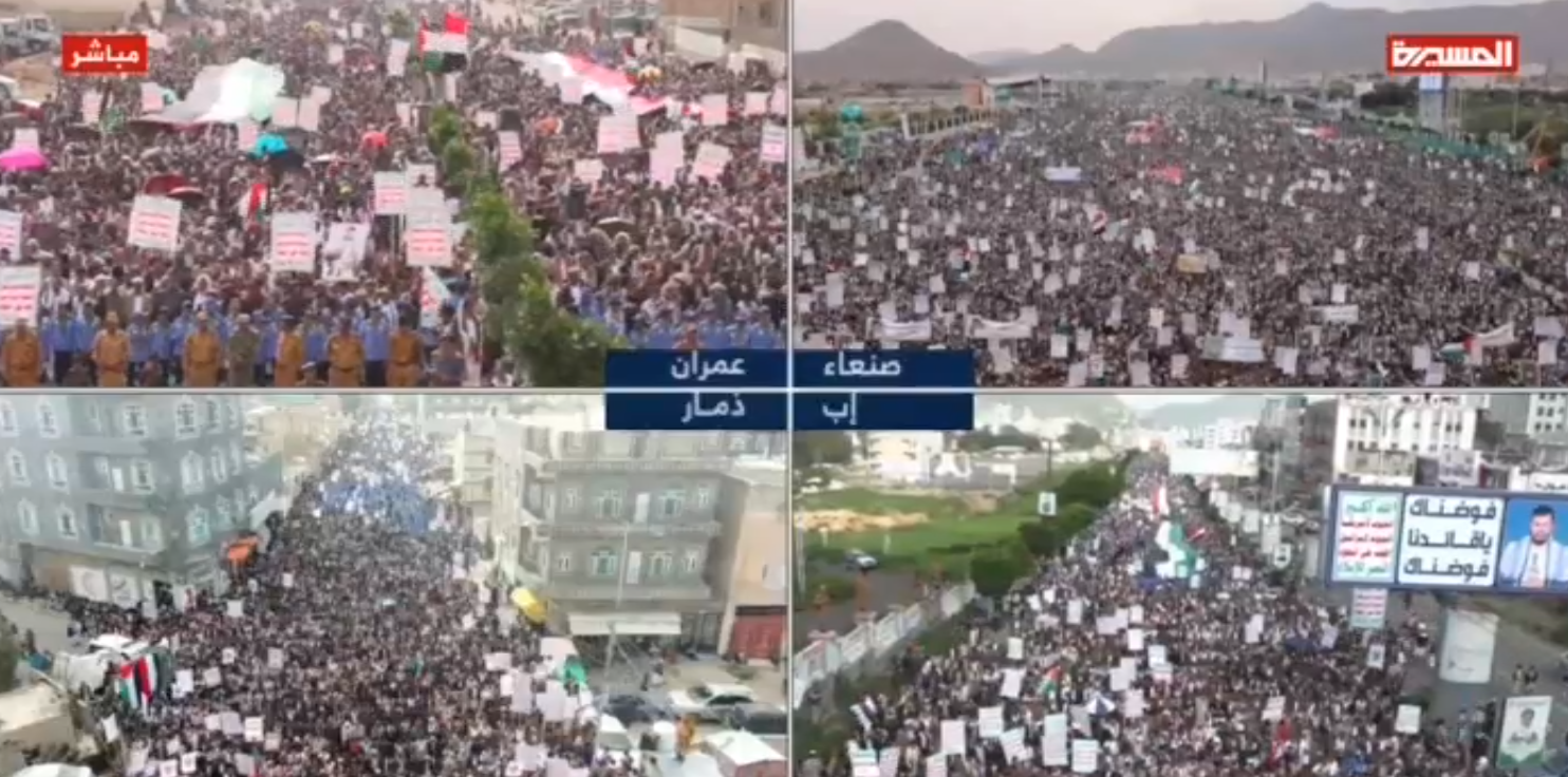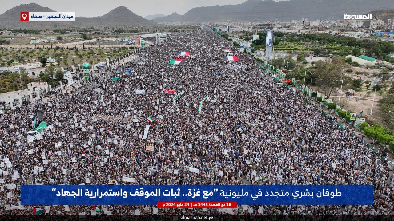 به گزارش سرویس بین الملل خبرگزاری صدا و سیما؛ میلیون ها یمنی با برگزاری راهپیمایی های حمایت غزه شهادت آیت الله رئیسی و همراهان ایشان را به مردم ایران تسلیت گفتند.