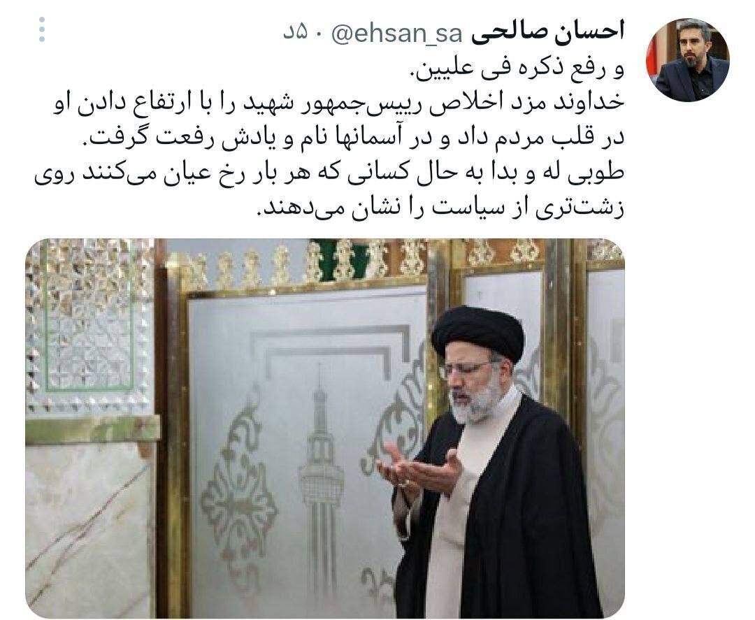 قالیباف در همین راستا نوشت: «دستاورد ماندگار شهید رئیسی در فضای سیاسی کشور، اخلاقمداری و عدم تخریب رقبا است.با طعنه و کنایه این دستاورد بزرگ را کمرنگ نکنیم».