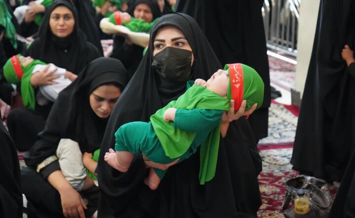 مراسم سوگواره شیرخوارگان حسینی در حرم مطهر احمد بن موسی شاهچراغ علیه السلام امسال با شکوه خاصی همانند هر سال برگزار شد و مادران نوزادان شیرخواره نوزادان خود را همانند واقعه کربلا بر روی دست گرفته و اشک ماتم ریختند.