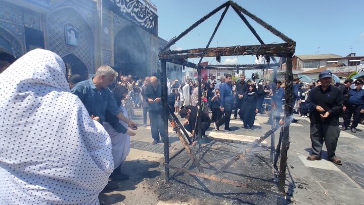 آستانه اشرفیه - اجرای تعزیه با عنوان آتش زدن خیمه ها با قدمت ۱۰۰ ساله در روز عاشورا و در صحن حرم مطهر سلطان سید جلال الدین اشرف آستانه اشرفیه برگزار شد.