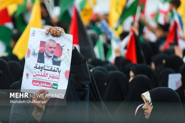 آستانه اشرفیه- مردم آستانه اشرفیه در پی شهادت «اسماعیل هنیه» و محکومیت جنایات اسراییل در حرم آقا سید جلال الدین اشرف تجمع کردند.